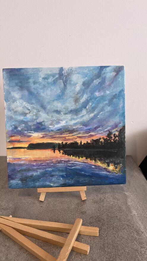 Obraz”Zachód nad jeziorem” olej na płótnie 20×20 cm